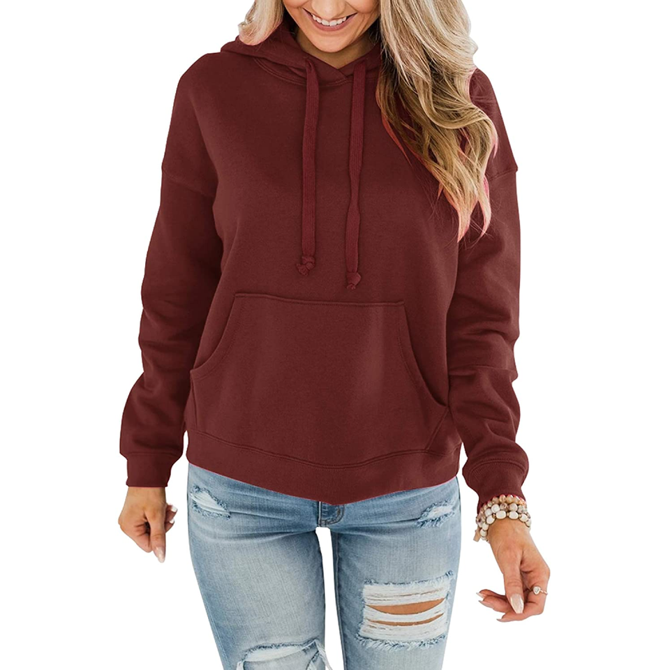 เสื้อฮู้ดและเสื้อสเวตเชิ้ตผู้หญิงไซส์ใหญ่สำหรับฤดูหนาว ผ้าเทอร์รี่ซับใน คอวี ทรงหลวม ผลิตจากเส้นใยไม้ไผ่รักษ์โลก พร้อมลายตัวอักษร