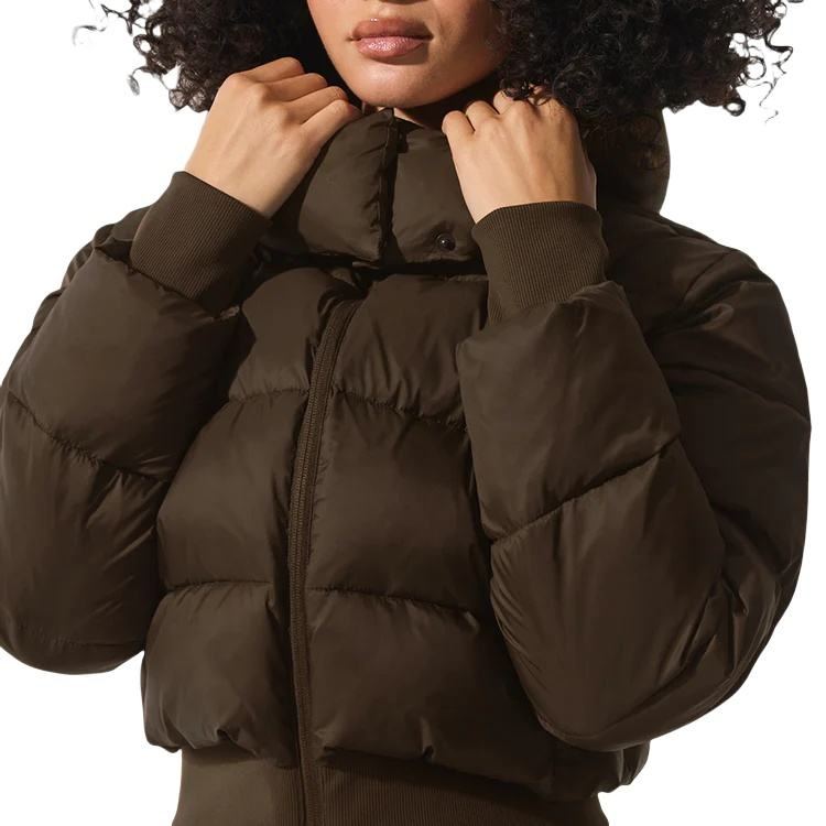 เสื้อแจ็คเก็ตพัฟเฟอร์ผู้หญิง OEM สำหรับฤดูหนาว เสื้อคลุมกันหนาวแบบเย็บติดกัน น้ำหนักเบา เหมาะสำหรับการผลิตภายใต้แบรนด์ส่วนตัว
