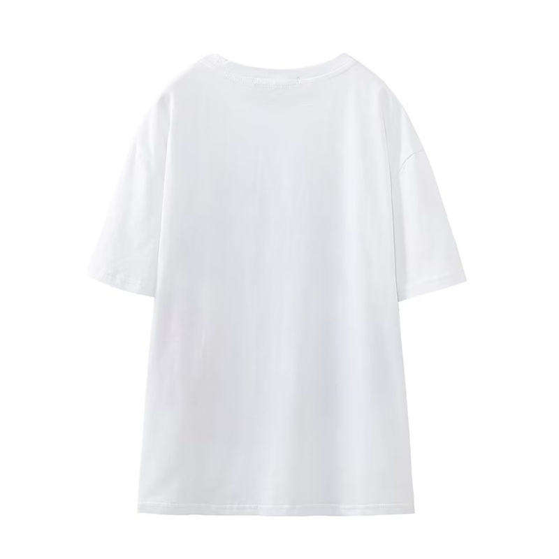 เสื้อยืดผู้หญิง OEM ลายพิมพ์ลำลอง ผ้าถักคุณภาพสูง ผ้าฝ้ายทรงโอเวอร์ไซส์ ทรงบ็อกซี่ สำหรับการผลิตแบบ Private Label
