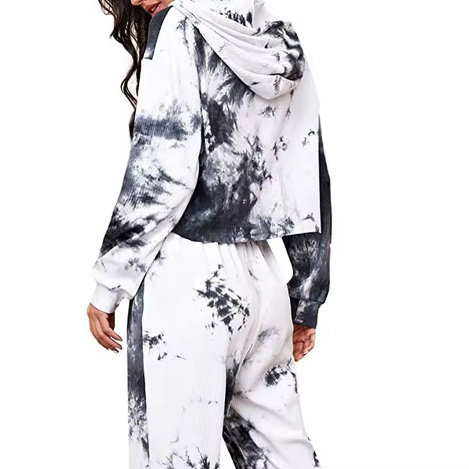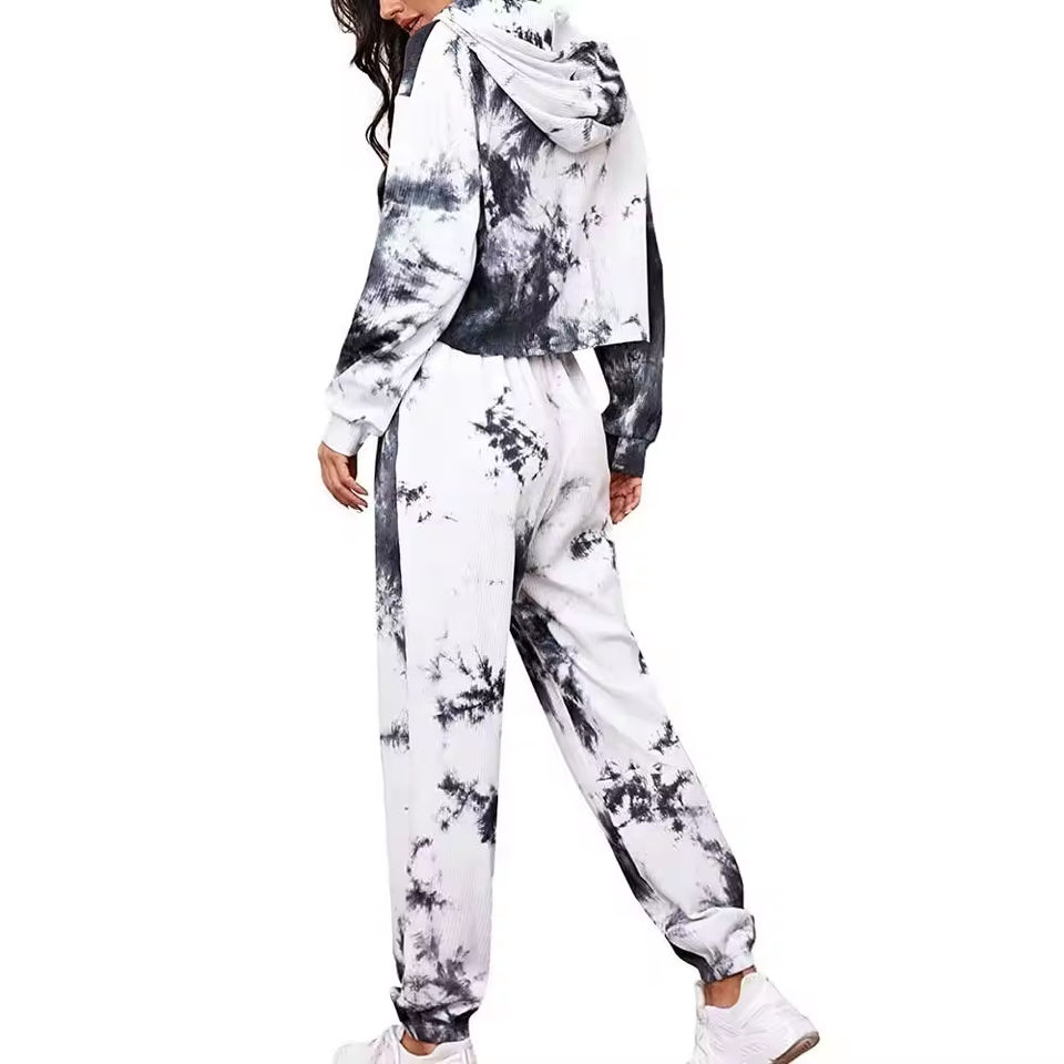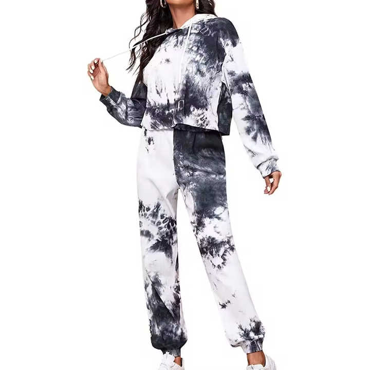 ชุดเซ็ตเสื้อครอปและกางเกงวอร์มผ้าฝ้ายฟลีซสำหรับผู้หญิง OEM สีน้ำเงินล้วน แบบมีฮู้ด ขายส่งราคาถูก ขายดี