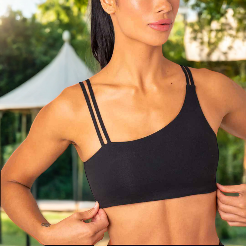 บราโยคะสายคล้องไหล่ข้างเดียวสำหรับผู้หญิง OEM ออกแบบได้ตามต้องการน้ำหนักเบาไร้รอยต่อดีไซน์ทรงหอยเชลล์