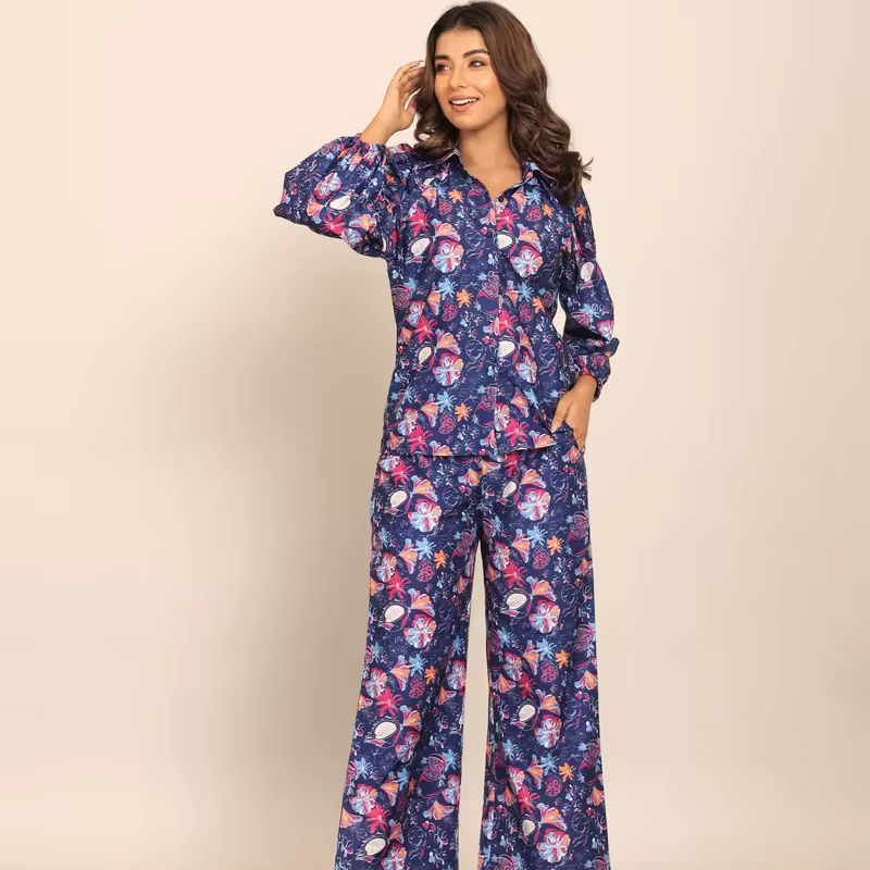 ชื่อผลิตภัณฑ์:กางเกงผ่อนคลายพิมพ์ลายดอกไม้สีฟ้าและหลากสีมีกระเป๋า2ข้าง
