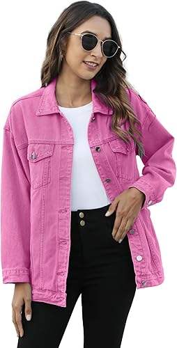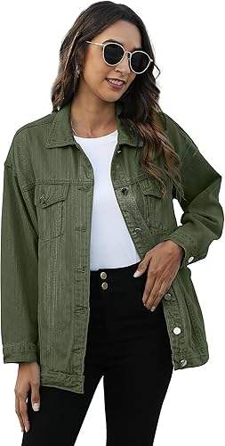 แจ็กเก็ตยีนส์ยาวโอเวอร์ไซส์สำหรับผู้หญิง1960S แบบลำลองเปิดด้านหน้ามีกระดุมสไตล์สตรีมพังค์ลายทางสีเขียวปานกลาง