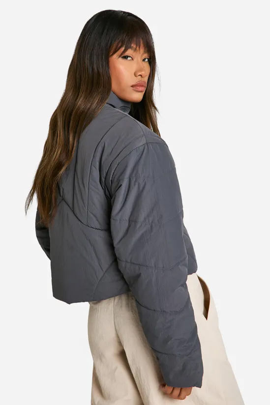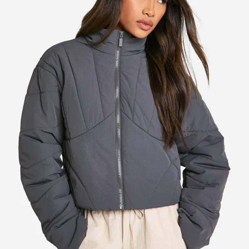 เสื้อแจ็กเก็ตตัวโคร่งคอสูงสำหรับสตรีผ้าแคนวาสระบายอากาศได้ดีมีตะเข็บแบบพองได้สำหรับฤดูหนาว