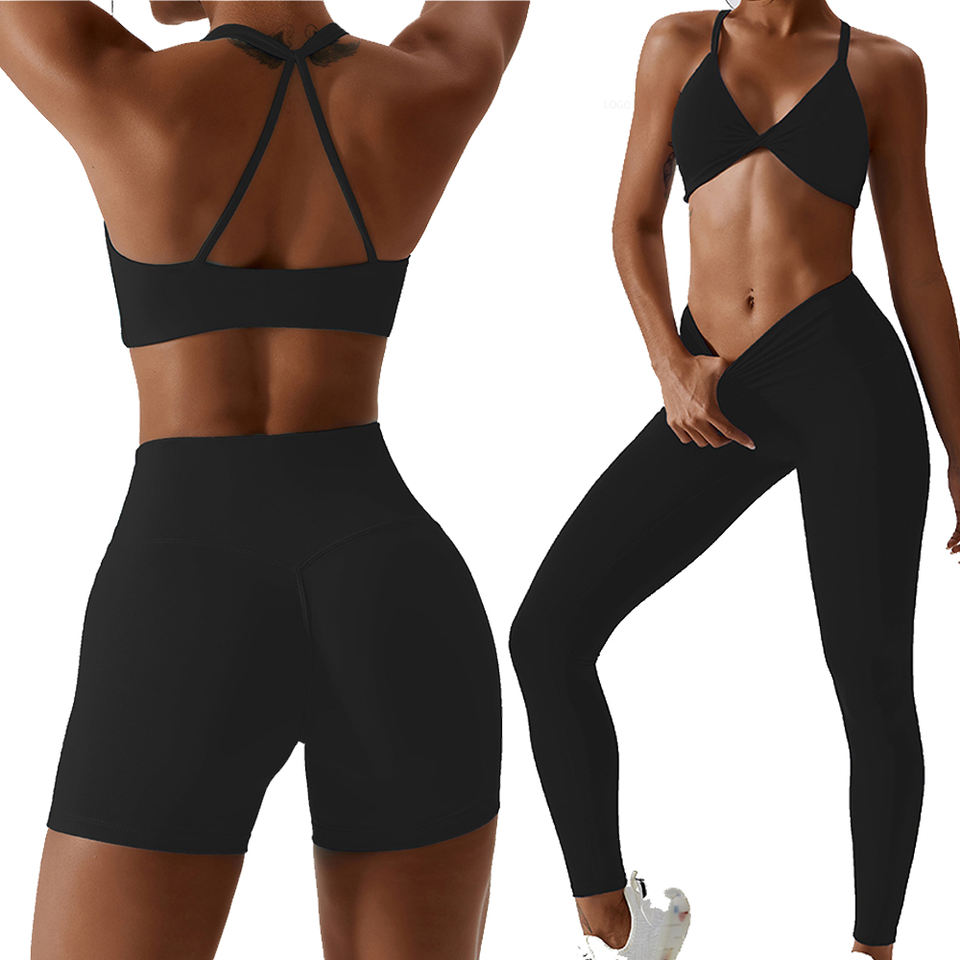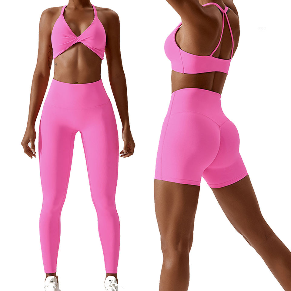Yogawear set leggings shorts bra topประเภท เอว