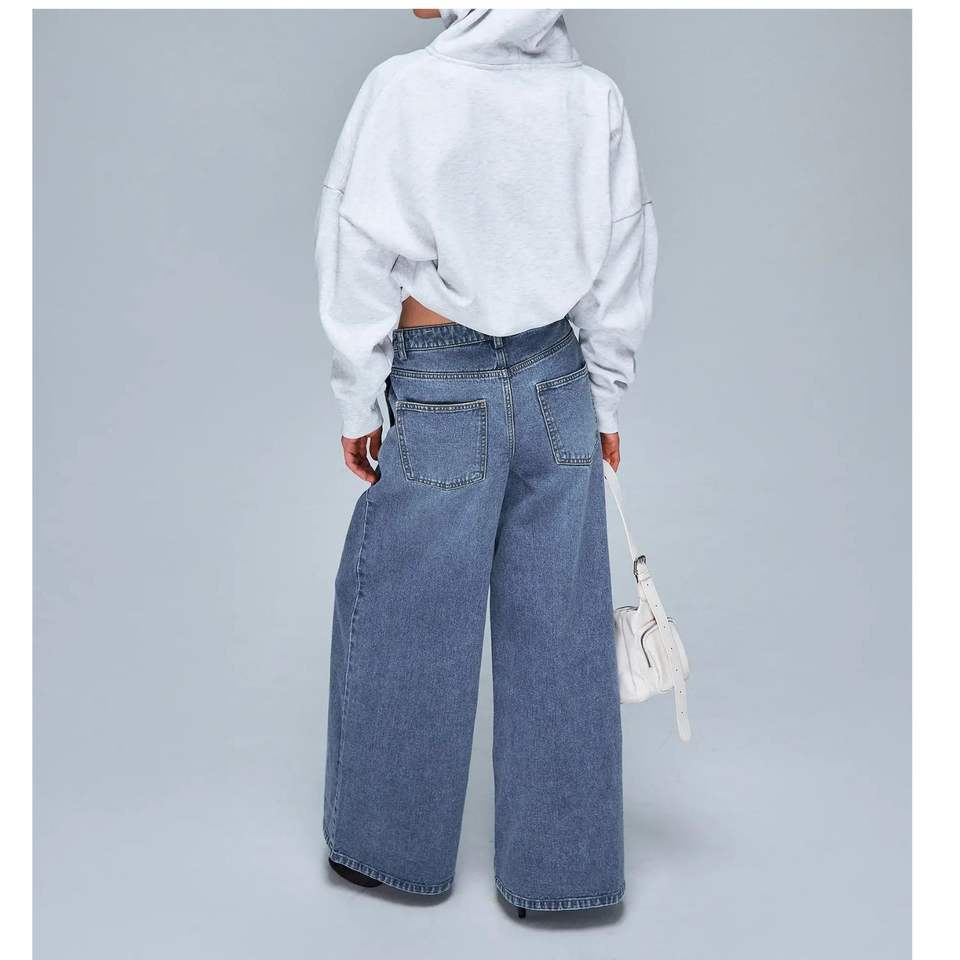 กางเกงยีนส์เดนิมสีน้ำเงินทรงขากว้างสำหรับผู้หญิง OEM – กางเกงแฟชั่นสตรีทแวร์เอวสูงลำลองสั่งทำขายส่ง