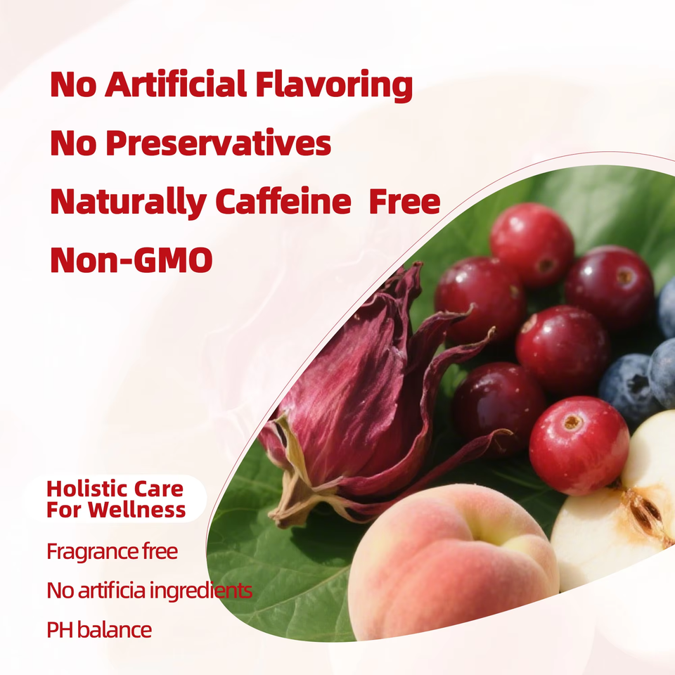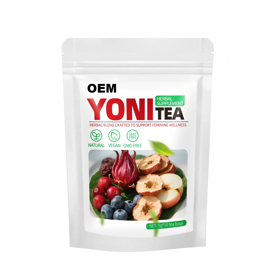 ชาสมุนไพรดีท็อกซ์ออร์แกนิค OEM ยี่ห้อ Yoni Wellness ผสมดอกชบา แครนเบอร์รี่ บลูเบอร์รี่ พีช แอปเปิ้ล ฮอว์ธอร์น บำรุงสุขภาพผู้หญิง 10 กล่อง