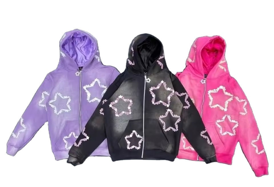ชุดวอร์มแบบมีซิปของผู้ชายชุดเสื้อผ้าสองชิ้นสำหรับใส่ตามสั่งลายดาวผ้าคุณภาพสูงสำหรับใส่ได้ทั้งชายและหญิง