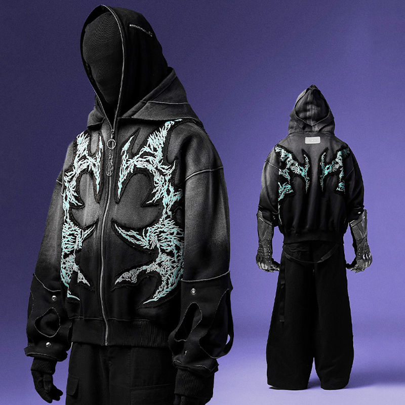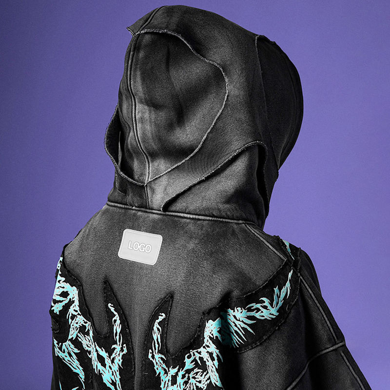 เสื้อฮู้ดดี้ผู้ชายแบบสตรีทแวร์คุณภาพสูง ปักลายแบบวินเทจ ทำสีซีดแบบฟอกกรด พิมพ์ลาย ปักลายตามสั่ง OEM