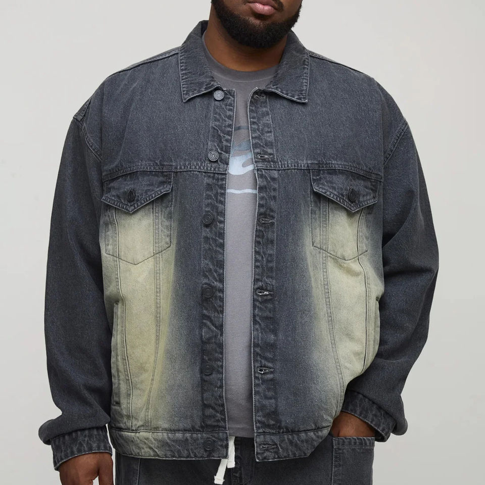 แจ็คเก็ตยีนส์สั่งทำ OEM แจ็คเก็ตปะติดปะต่อ แจ็คเก็ตยีนส์สีดำ แจ็คเก็ตแฟชั่นสำหรับแบรนด์ในเมือง สหรัฐอเมริกา
