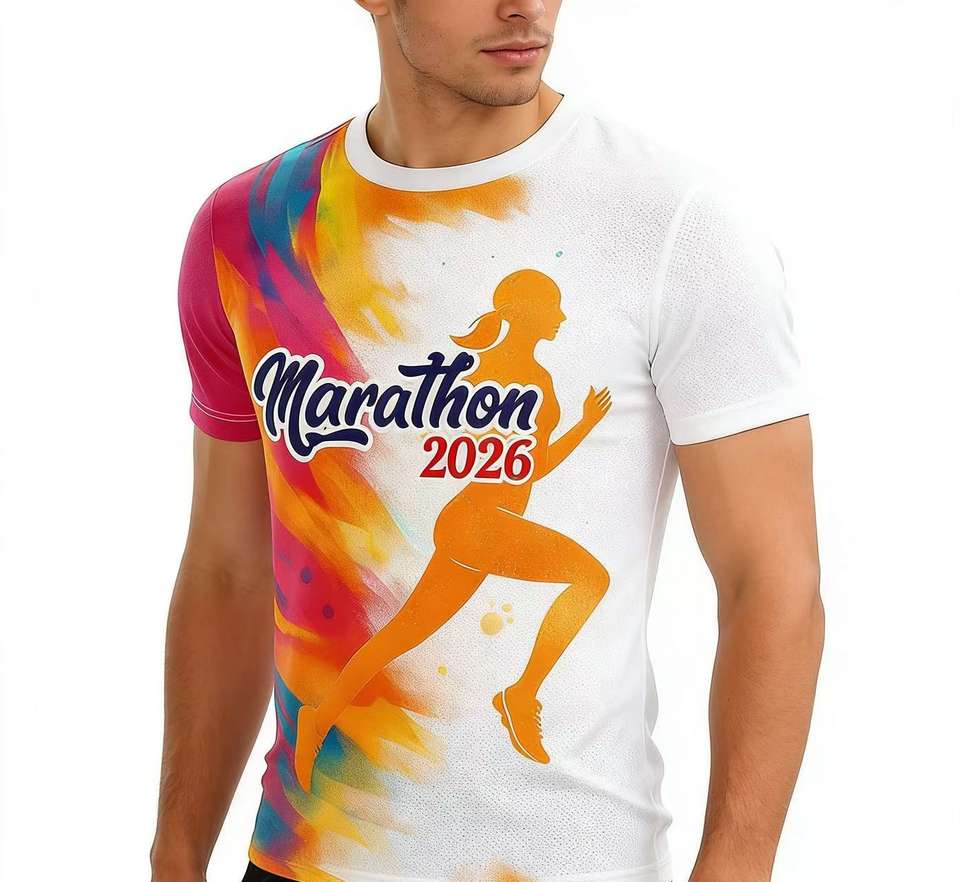 เสื้อวิ่งถักแบบสั่งทำพร้อมโลโก้ OEM ขายส่ง เสื้อยืดวิ่งมาราธอนแบบแห้งเร็ว พิมพ์ลายด้วยเทคนิค Discharge สำหรับกิจกรรมทีม ชมรม และโปรโมชั่น