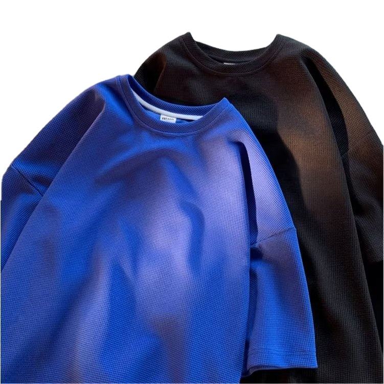 เสื้อยืดลายวาฟเฟิลสำหรับผู้ชายเสื้อยืดคอกลมสีทึบเข้ากับทุกชุดสำหรับใส่ในฤดูร้อนออกแบบโลโก้ได้ตามต้องการ