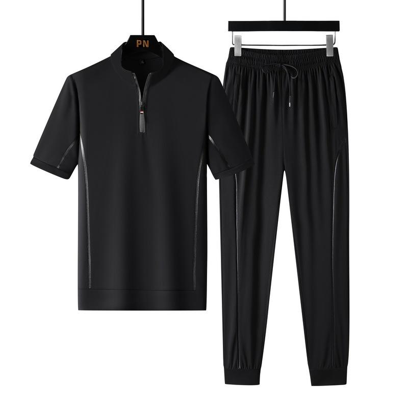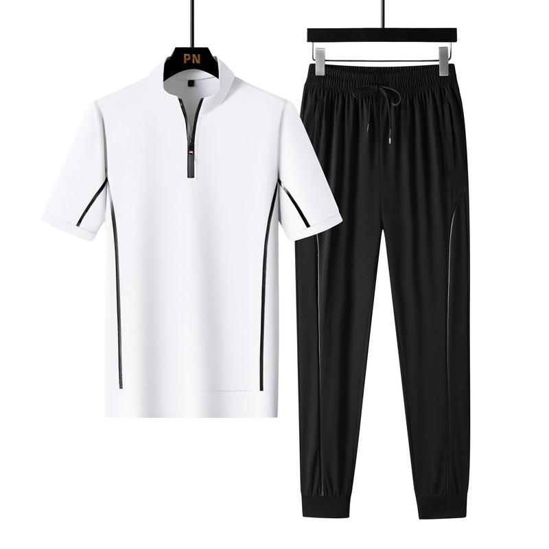 ชุดสูทแขนสั้นแบบมีซิปของผู้ชายชุดสูทสองชิ้น2025ฤดูร้อนพิมพ์ลายปักโลโก้ออกแบบได้ตามต้องการ