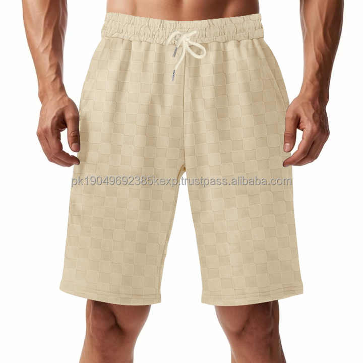 กางเกงขาสั้นสำหรับผู้ชายกางเกงขาสั้นผ้าแจ็คการ์ดแบบลำลองทรงหลวมพิมพ์ลายปักโลโก้ออกแบบได้ตามต้องการสำหรับฤดูร้อน