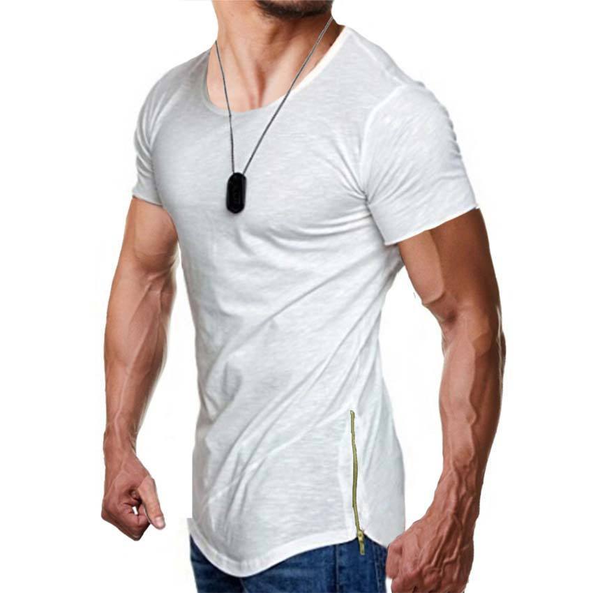 เสื้อยืดแขนสั้นสำหรับผู้ชายเสื้อครึ่งแขนมีซิปสีล้วนคอกลมแนวฮิปฮอปออกแบบโลโก้ได้ตามต้องการ