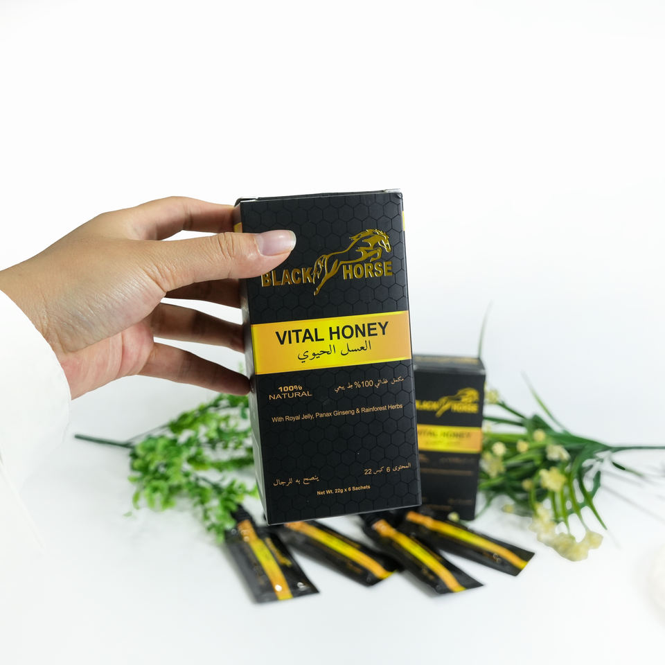 น้ำผึ้งบำรุงกำลังแบล็คฮอร์สแบบ OEM สูตรเฉพาะ บรรจุในกล่องพับได้ ช่วยเพิ่มพลังงานและเสริมภูมิคุ้มกัน ไม่เหมาะสำหรับสตรีมีครรภ์