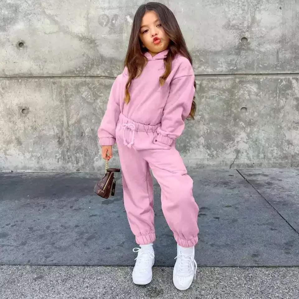 ชุดวอร์มเด็กผู้หญิงชุดเสื้อผ้าขนแกะสองชิ้นสำหรับเด็กผู้หญิงตัวเล็กสั่งได้