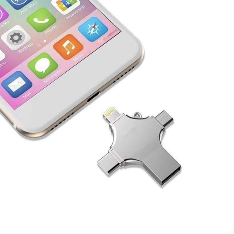 OEM LOGO 4 in 1 USB แฟลชไดรฟ์3.0 OTG ไดรฟ์ปากกา pendrive 32GB 64GB แฟลชเมมโมรี่ดิสก์128GB 1 TB 2 TB USB Stick สำหรับ iPhone iPod