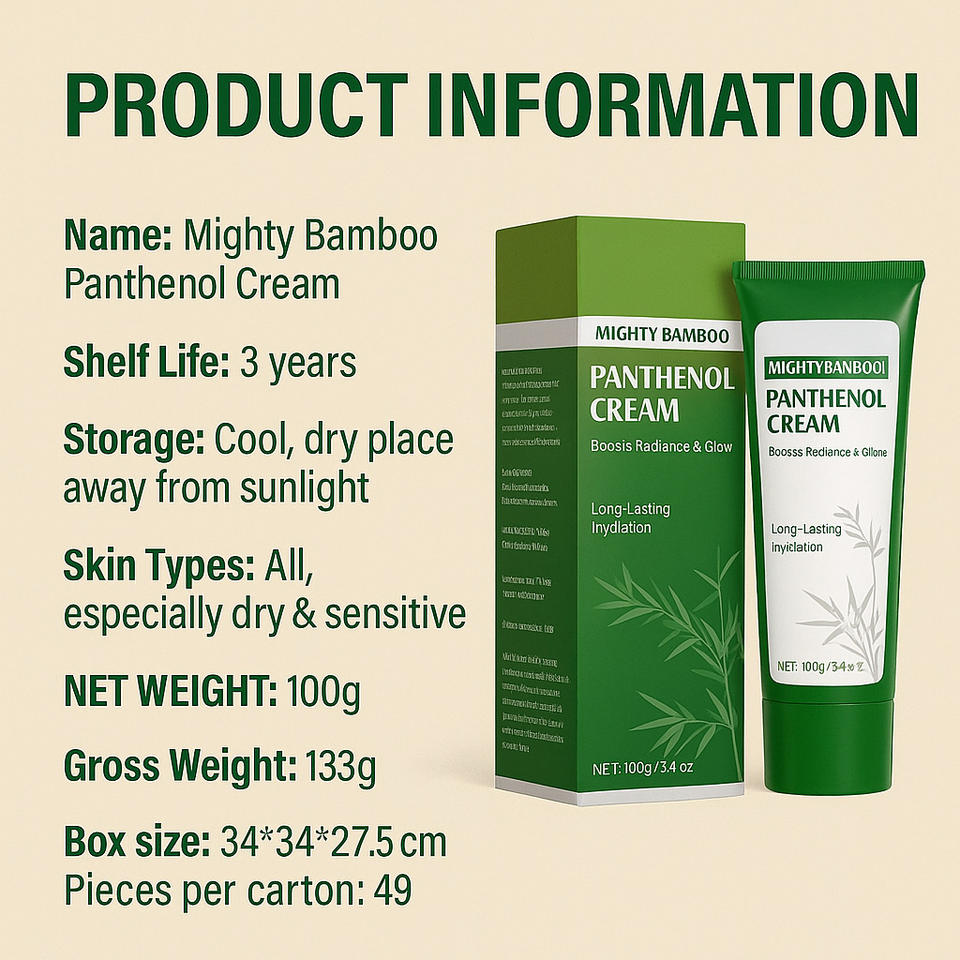 ครีมแพนทีนอลจากไม้ไผ่ OEM ยอดนิยม ขนาด 100 กรัม บำรุงผิวชุ่มชื้น นุ่มนวล กระชับ และยกกระชับผิว