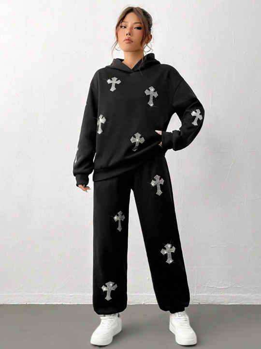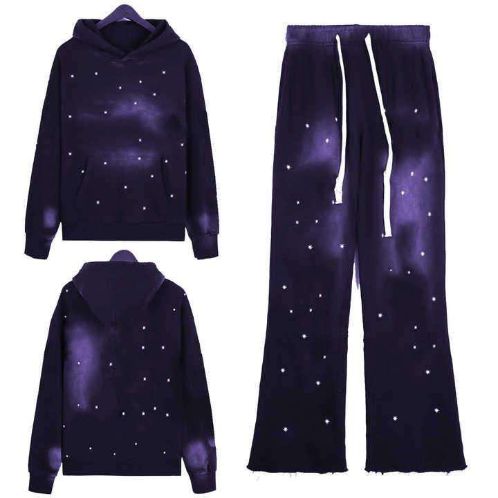 เสื้อฮู้ด OEM พลอยเทียมพร้อมโลโก้ที่กำหนดเองรวมถึงกางเกงหรือชุดวอร์มเป็นชุดเต็มตัว