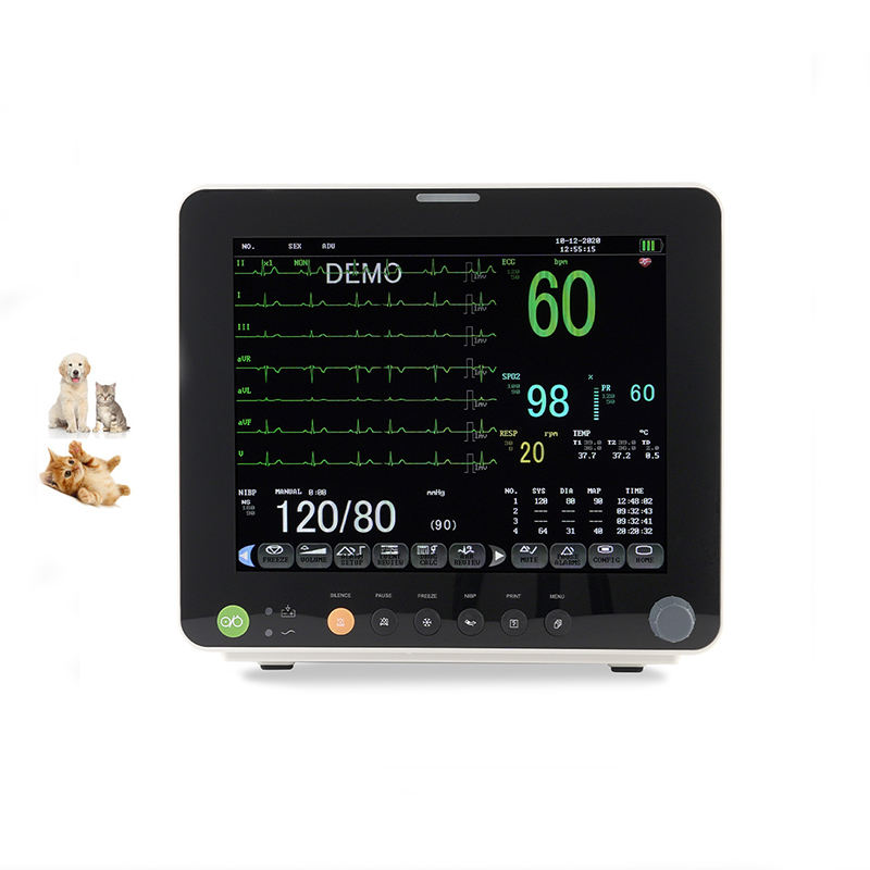 มอนิเตอร์สัตวแพทย์ OEM 12นิ้ว6พารามิเตอร์เครื่อง ICU de signos vitales จอภาพสัตว์เลี้ยงระยะไกล