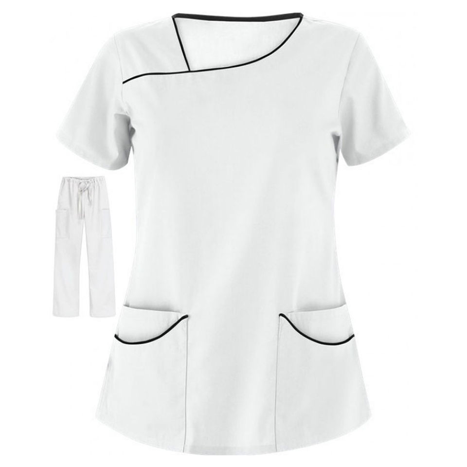 ชุดเครื่องแบบพยาบาลสำหรับโรงพยาบาลชุดสแปนเด็กซ์แขนสั้นออกแบบโลโก้/ขนาด/สีได้ตามต้องการ