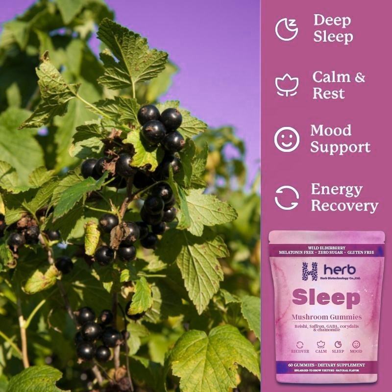 อาหารเสริมกัมมี่เห็ด OEMODM สำหรับการนอนหลับและการผ่อนคลาย ด้วยเห็ดหลินจือซุปเปอร์มัชชูร์ และเอลเดอร์เบอร์รี่ป่า