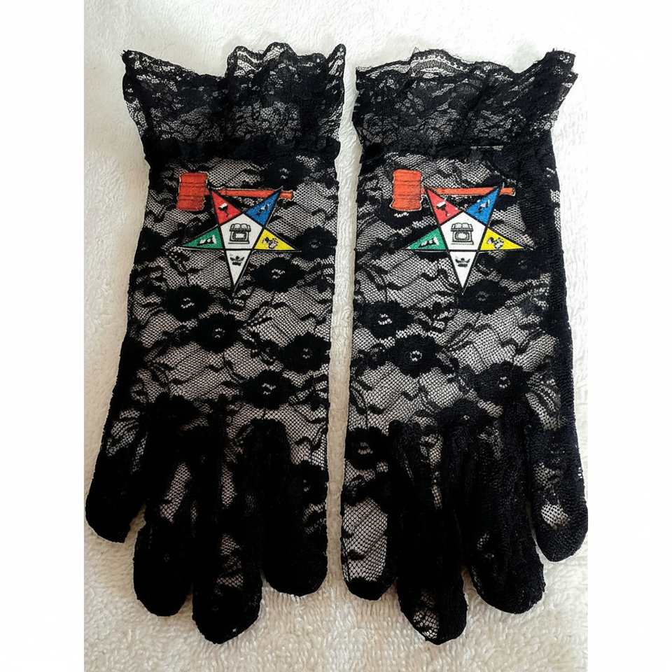 ถุงมือลูกไม้สีดำตราสัญลักษณ์ตราดาวตะวันออก
