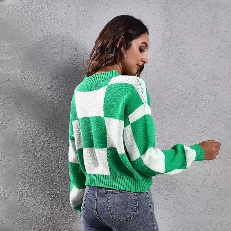 OFF 20% ขายส่งฤดูใบไม้ร่วง Checkerboard ไหล่ยาวแขนสั้นหลวมลายสก๊อต Crop TOP แฟชั่นผู้หญิงเสื้อกันหนาว