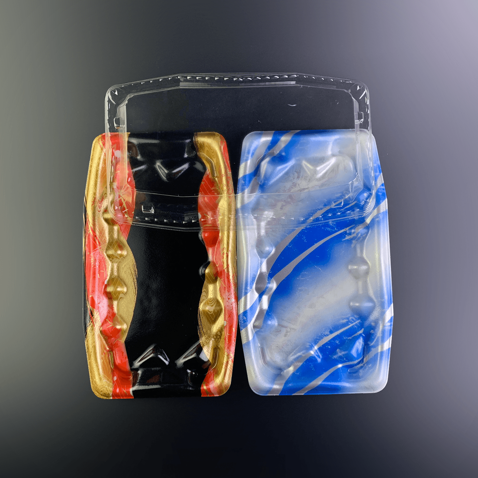 ถาดอาหารแบบใช้แล้วทิ้ง OFUNA เกรดอาหาร รูปทรงสี่เหลี่ยม สีดำ-แดง สำหรับใส่ซูชิ สลัด ผลิตที่ฮานอย เวียดนาม
