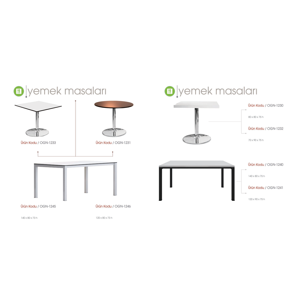 ชุดโต๊ะอาหาร OGN-1230 สำหรับร้านอาหาร รุ่น OGN-1231 OGN-1232 OGN-1233 OGN-1240 OGN-1241 OGN-1245 OGN-1246