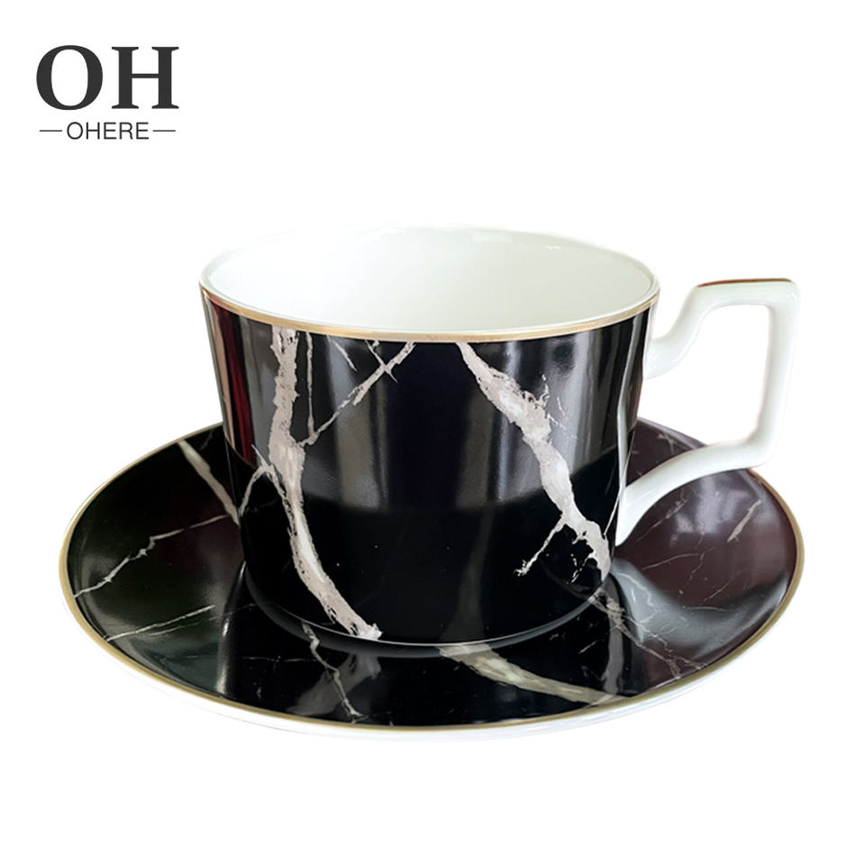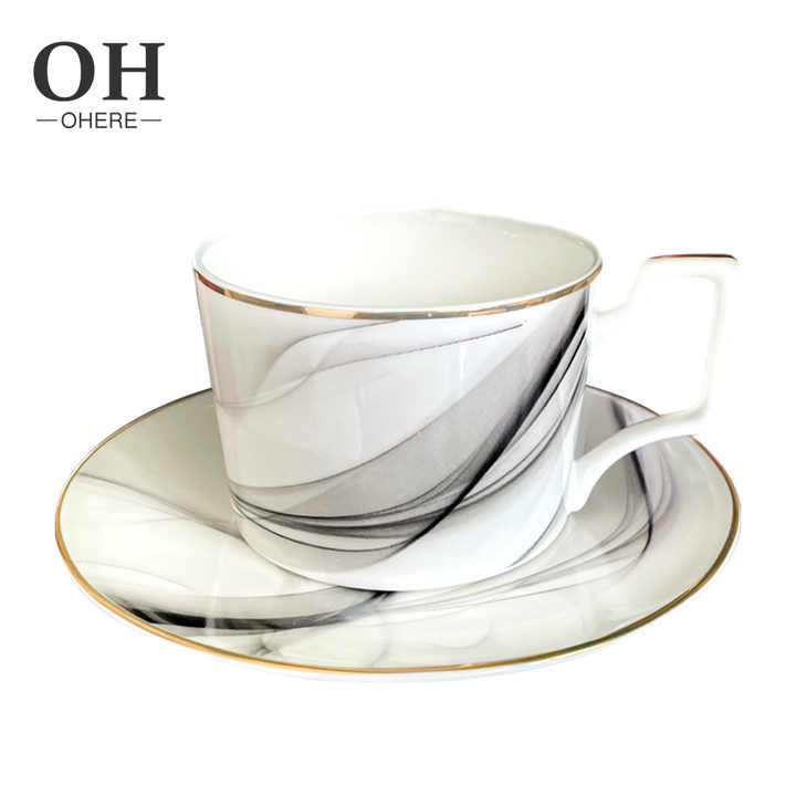 ถ้วยชาพร้อมจานรองสไตล์ยุโรปคุณภาพสูง ทำจากกระดูกจีน เหมาะสำหรับใช้ในบ้าน ร้านกาแฟ งานแต่งงาน และให้เช่า