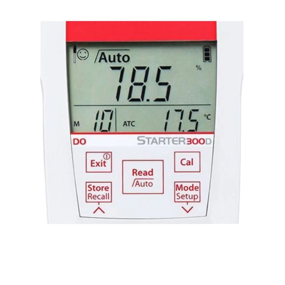 เครื่องวัดออกซิเจนละลายน้ำ (DO) แบบพกพา OHAUS Starter 300D ST300D พร้อมระบบชดเชยอุณหภูมิอัตโนมัติ (ATC) / ชดเชยอุณหภูมิและความเค็ม (MTC) และชดเชยความดันบรรยากาศ