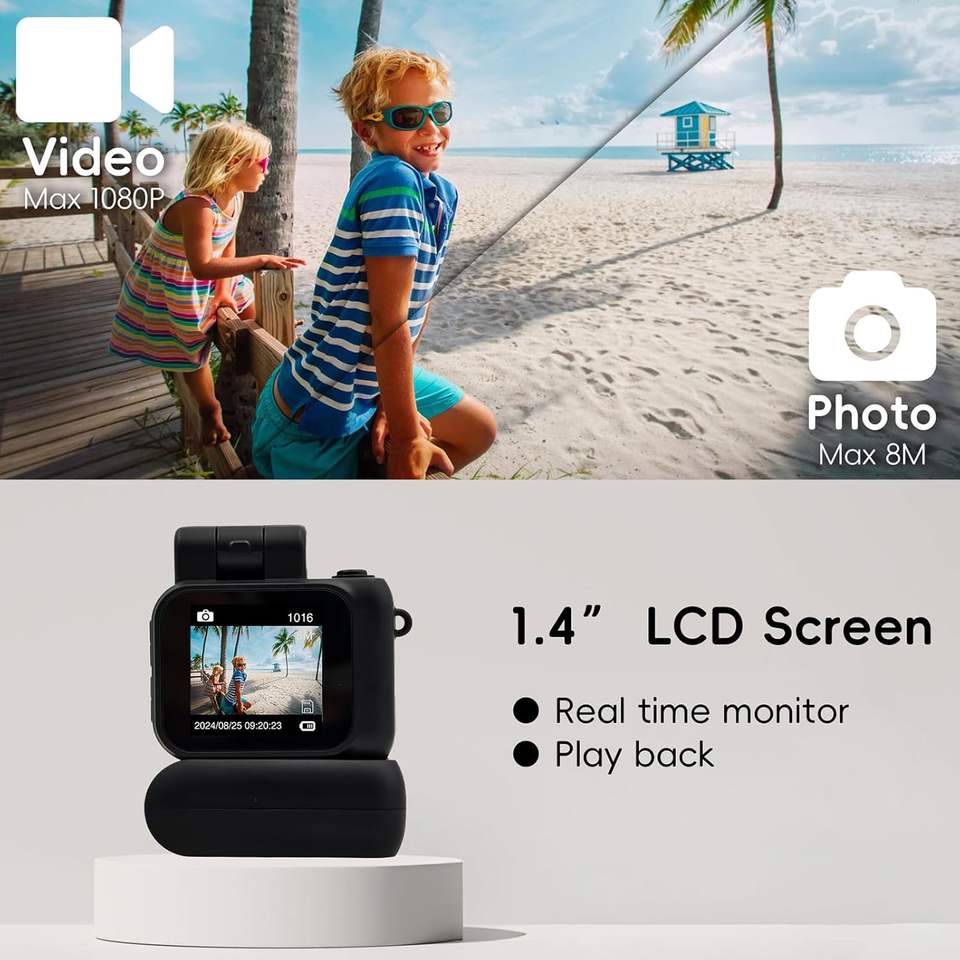 Oikspy กล้องดิจิตอลแบบพกพา1.4หน้าจอ LCD ขนาด1080P 32GB ฐานชาร์จการ์ดมิเรอร์เลสทรงโมโนรูปแบบ1/1.7นิ้ว
