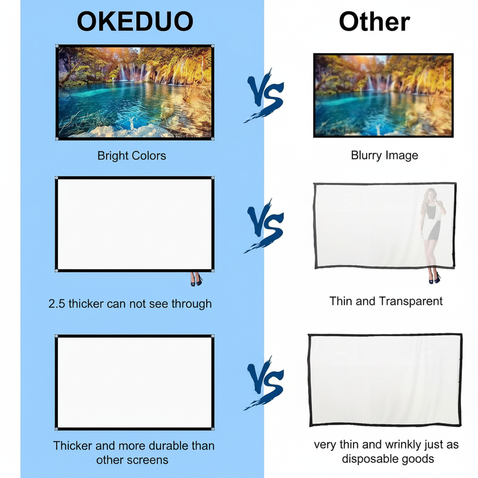 จอฉายภาพยนตร์แบบติดผนัง OKEDUO 4K 16:9 HD ขนาด 52x30 นิ้ว ผ้าโปรเจคเตอร์แบบลูกปัดแก้ว ติดตั้งง่ายในร่ม ผ้าป้องกันรอยยับ