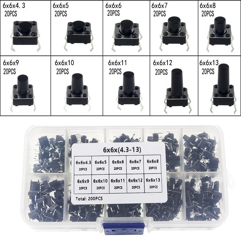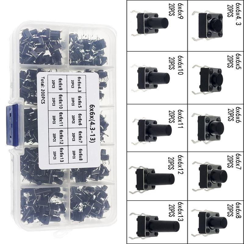 ชุดสวิตช์กดแบบสัมผัส OKYN-Y0255 จำนวน 200 ชิ้น ขนาด 6*6 มม. 4.3 มม. x 13 มม. แบบ DIP 4 ขา สวิตช์กด 6*6 สำหรับโครงการ Arduino