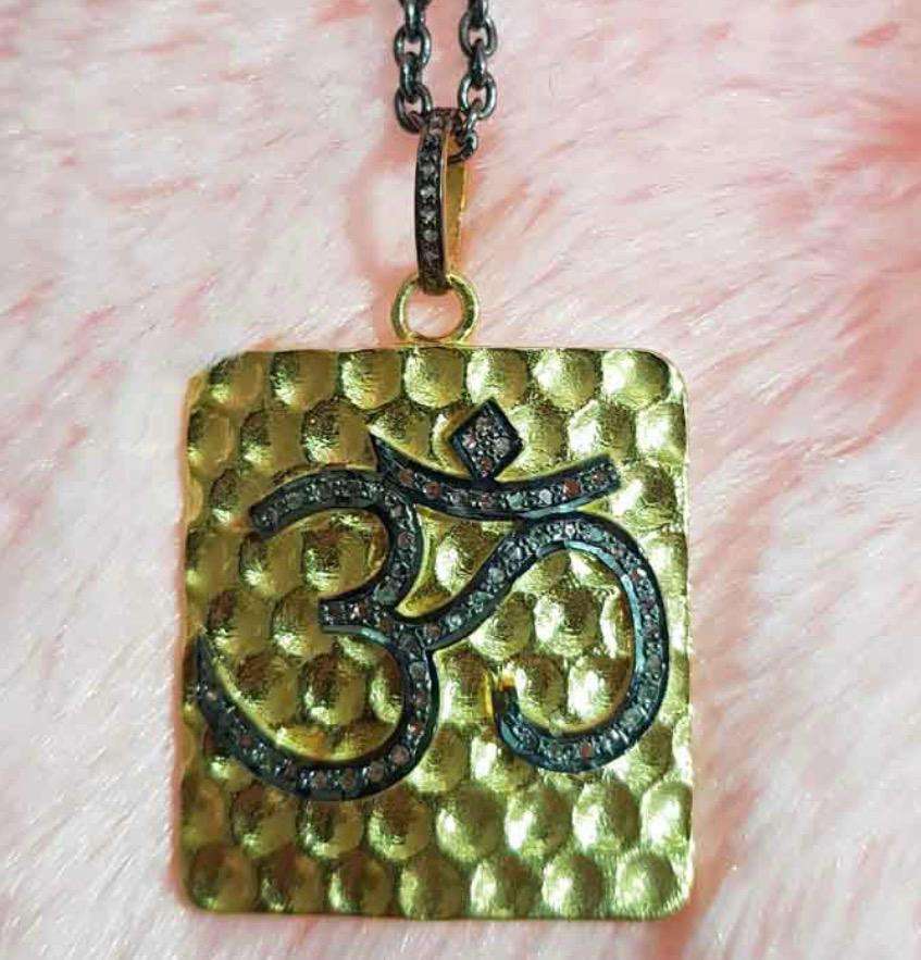 OM จี้เพชรปู925เครื่องประดับธรรมชาติเงินสเตอร์ลิง28X28มม. ชุบโรเดียมสีดำวินเทจสำหรับงานแต่งงานและงานหมั้น