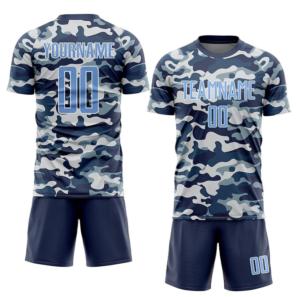 เครื่องแบบกีฬาฟุตบอลสำหรับผู้ใหญ่ชุดเสื้อสีฟ้าทำจากโพลีเอสเตอร์และชุดเครื่องแบบฟุตบอลสั้นสีดำ