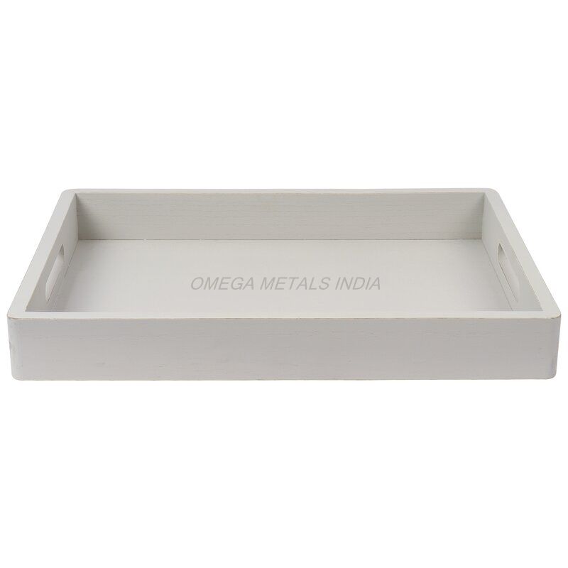 ถาดไม้ทำมือ OMEGA METALS INDIA ดีไซน์หรูหรา สีขาวนวล รูปทรงสี่เหลี่ยม แข็งแรง ทนทาน ผิวสัมผัสแบบขัดเงา ใช้กับเครื่องล้างจานและไมโครเวฟได้