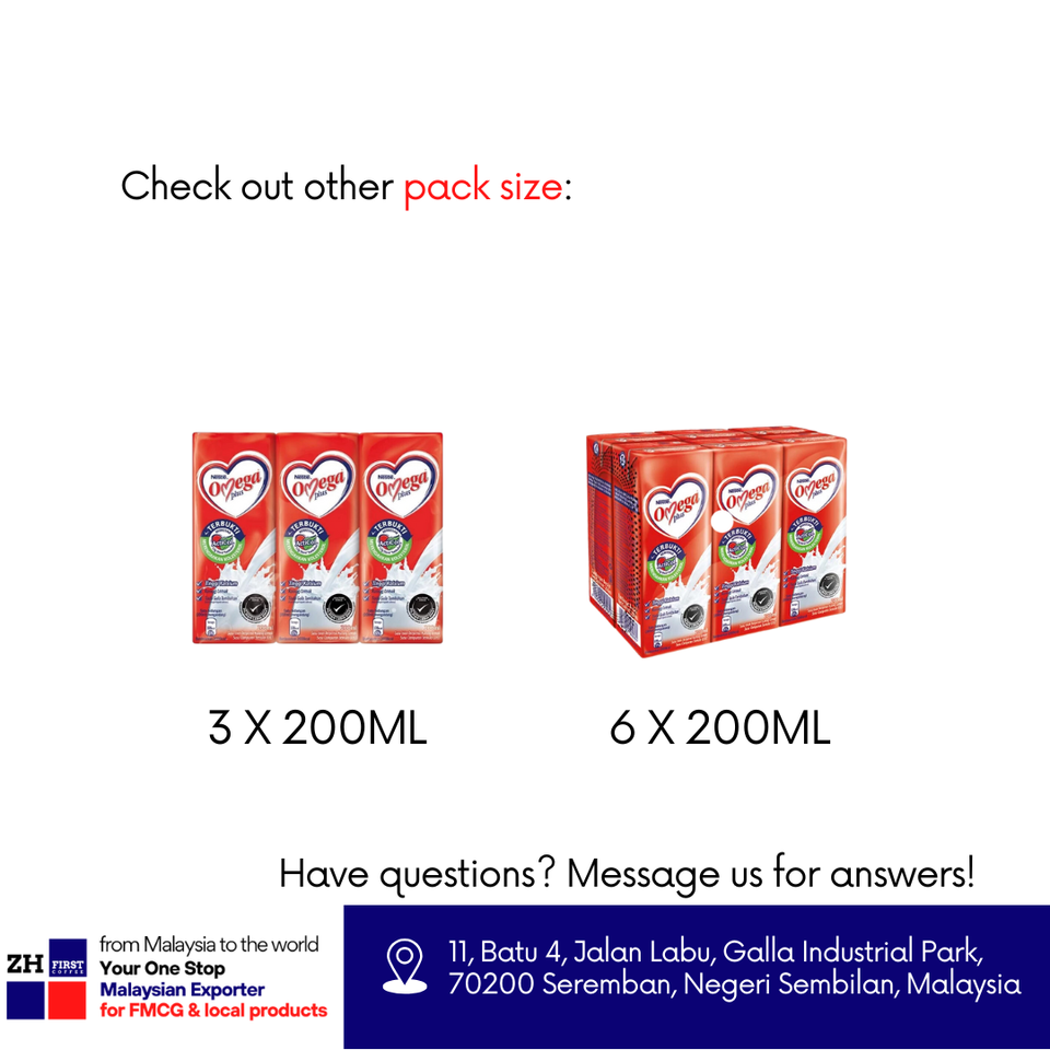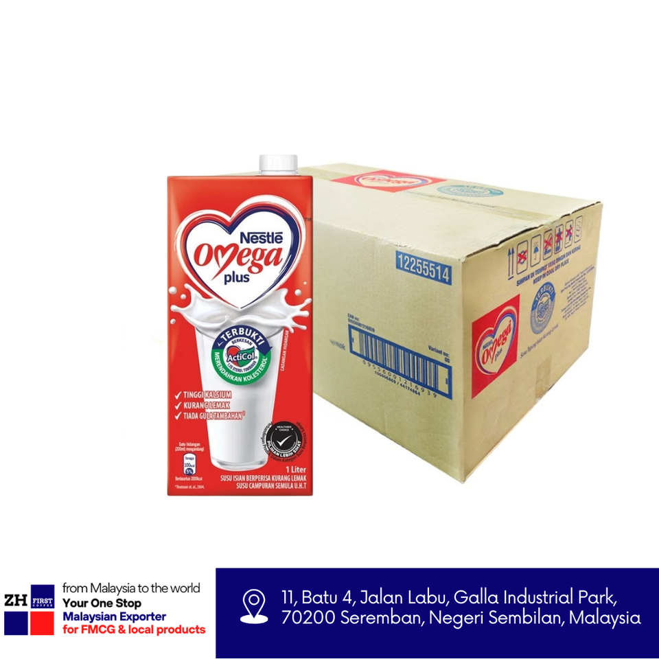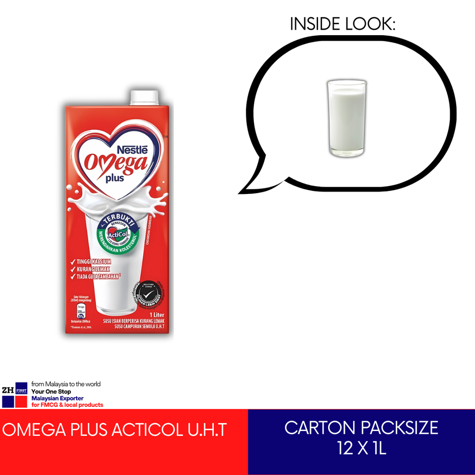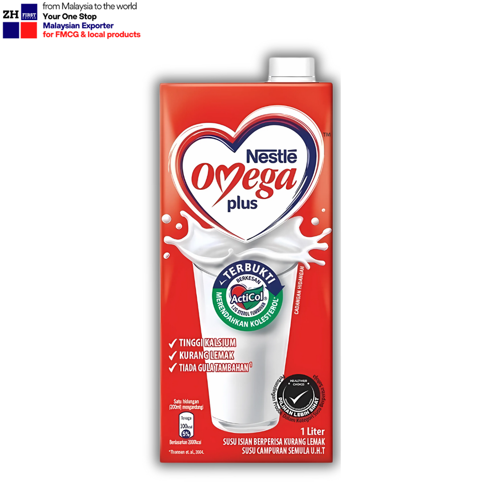 OMEGA PLUS acticol UHT แพ็ค1ลิตรเครื่องดื่มนมครีมเครื่องดื่มฮาลาล nestlee Malaysia MIX Container ราคาถูกกล่องสติกเกอร์ฟรี