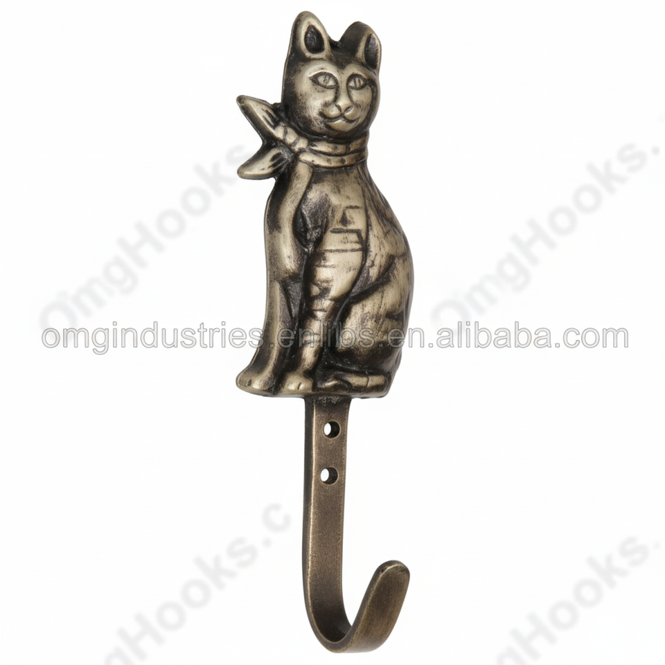OMG Industries ตะขอเหล็กหัวสัตว์ทองเหลืองโบราณชั้นวางหมวกติดผนังคู่สำหรับเฟอร์นิเจอร์และตู้