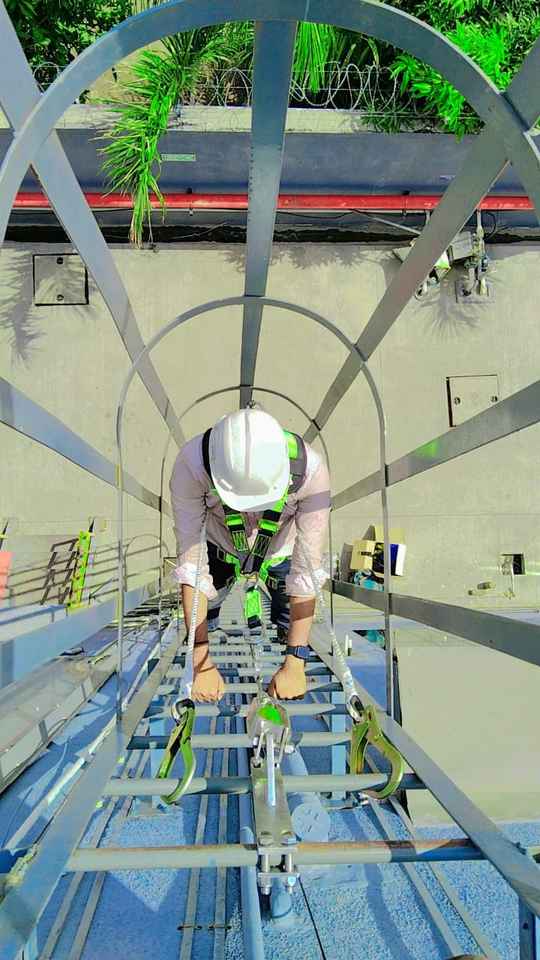 ระบบเชือกช่วยชีวิตแนวตั้งแบบปรับความยาวได้ OMKAR SS316 พร้อมระบบปรับระดับลำตัวแบบคงที่และจุดยึดเชือกช่วยชีวิตแนวตั้ง