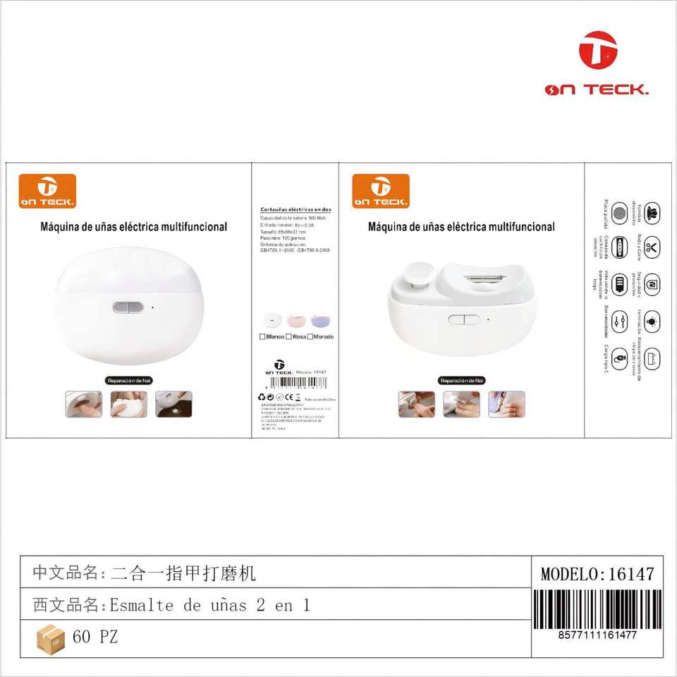 เครื่องเจียรเล็บ ON TECK 2-in-1 แบบชาร์จ USB ได้ ใช้งานได้สองแบบ สำหรับทำเล็บมือ รูปทรงกลม ทำจากพลาสติก หัวเจียรแบบ CN Plug