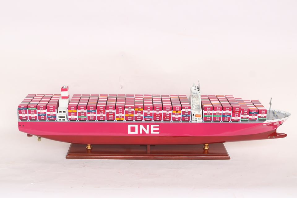 แบบจำลองเรือคอนเทนเนอร์ ONE APUS ทำจากไม้คุณภาพสูง - สำหรับเป็นของขวัญทางธุรกิจและของตกแต่งสำนักงาน