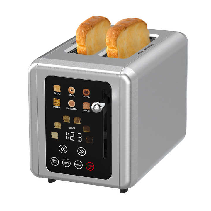 เครื่องปิ้งขนมปัง ONSON แบบสัมผัสหน้าจอ 2 แผ่น ปิ้งขนมปังอัตโนมัติ สแตนเลส ให้ความร้อนเร็ว เครื่องทำอาหารเช้าสำหรับใช้ในบ้าน