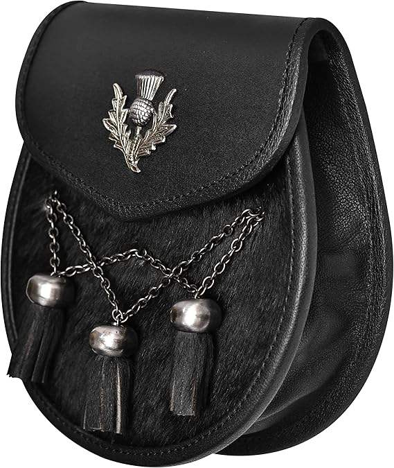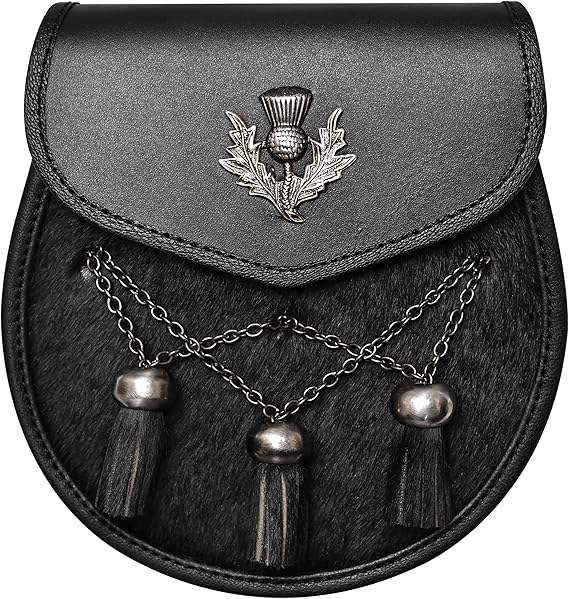 OnStyle sportish Kilt sporran sportran 3พู่ & Thistle Kilt sporran เข็มขัดหนังแท้สีดำ