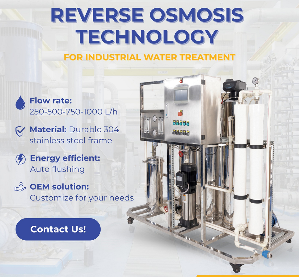 ระบบกรองน้ำ ONTOZ 500 ลิตรต่อชั่วโมง ระบบ Reverse Osmosis (RO) สำหรับบำบัดน้ำในอุตสาหกรรม ปรับแต่งระบบ RO ได้