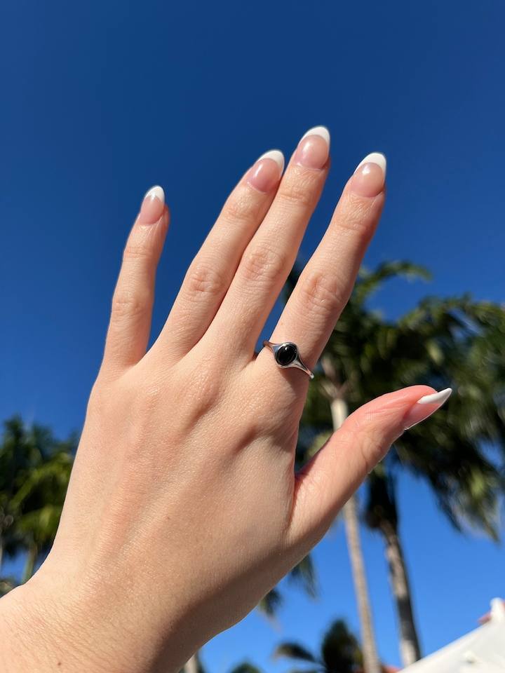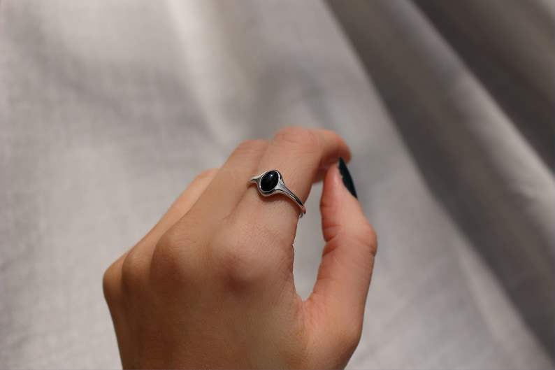 ONY Authentic S925 Sterling Silver Adjustable Ring Black Agate Gemstone Waterproof Wedding Oval Cut Bezel Setting Parties