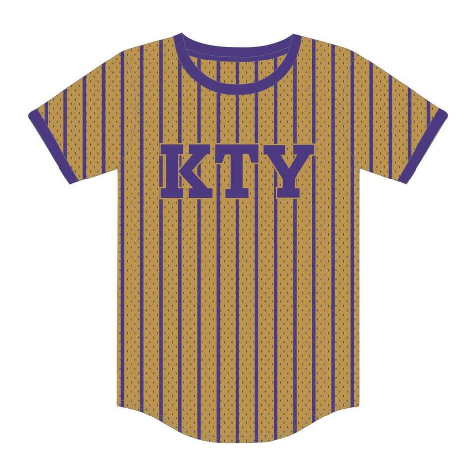 OPP Gold Pinstripe Pullover Baseball Jersey 100% Polyester Mesh Omega Fraternity T Shirt with Custom Embroidered Applique Logo