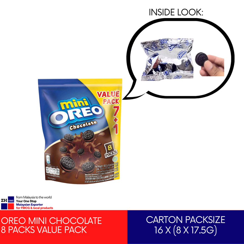 โอรีโอ มินิ ช็อกโกแลตแซนวิช 17.5 กรัม แพ็คสุดคุ้ม คุกกี้ช็อกโกแลตไส้ครีม ฮาลาล โมนเดลีซ มาเลเซีย บรรจุภัณฑ์แบบคละรส ราคาถูก